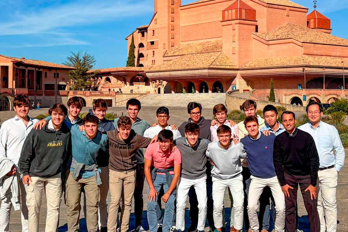 Hoy nos ha visitado un grupo de jóvenes que participan en las actividades organizadas por el Colegio Mayor Ayete de San Sebastián. Han asistido a la misa celebrada por su sacerdote en la capilla de la Sagrada Familia y a la proyección del vídeo-mapping «El retablo te cuenta».