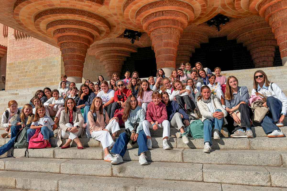 Alumnas del colegio Nelva de Murcia, acompañadas por sus profesoras, han visitado hoy Torreciudad en el marco de una convivencia organizada por el centro educativo en las inmediaciones del santuario. A su llegada han visto el vídeo de presentación en la sala de proyecciones de la Oficina de Turismo y, organizadas por grupos, han realizado un recorrido guiado que ha incluido el Espacio «Vive la experiencia de la fe», han participado en una gymkana y han asistido a la misa celebrada en el altar mayor del templo y a la proyección del vídeo-mapping «El retablo te cuenta».