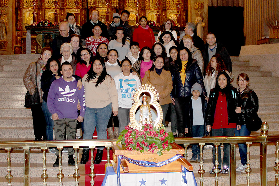 Un grupo de familias inmigrantes hondureñas residentes en Cataluña han celebrado hoy en el santuario la fiesta de la Virgen de Suyapa, Patrona de su