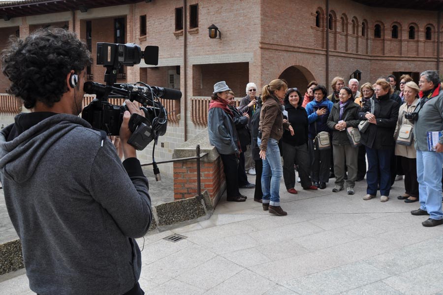 Una unidad móvil de Aragón TV está preparando un reportaje sobre grupos de hacen el tramo aragonés de la Ruta Mariana. Esta mañana ha seguido