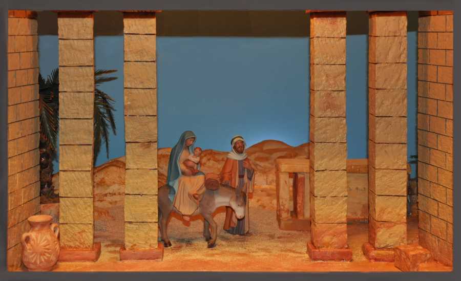 Los trabajadores del santuario están terminando el Belén que se coloca en la capilla de Loreto; y nuestros voluntarios belenistas de San Sebastián -Isabel, Jesús