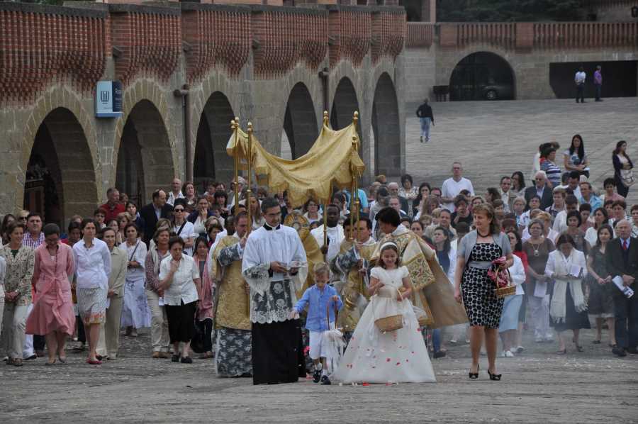 Al terminar la misa de 12 h. la procesión con el Santísimo Sacramento ha recorrido la explanada acompañada por muchos fieles, los niños que han