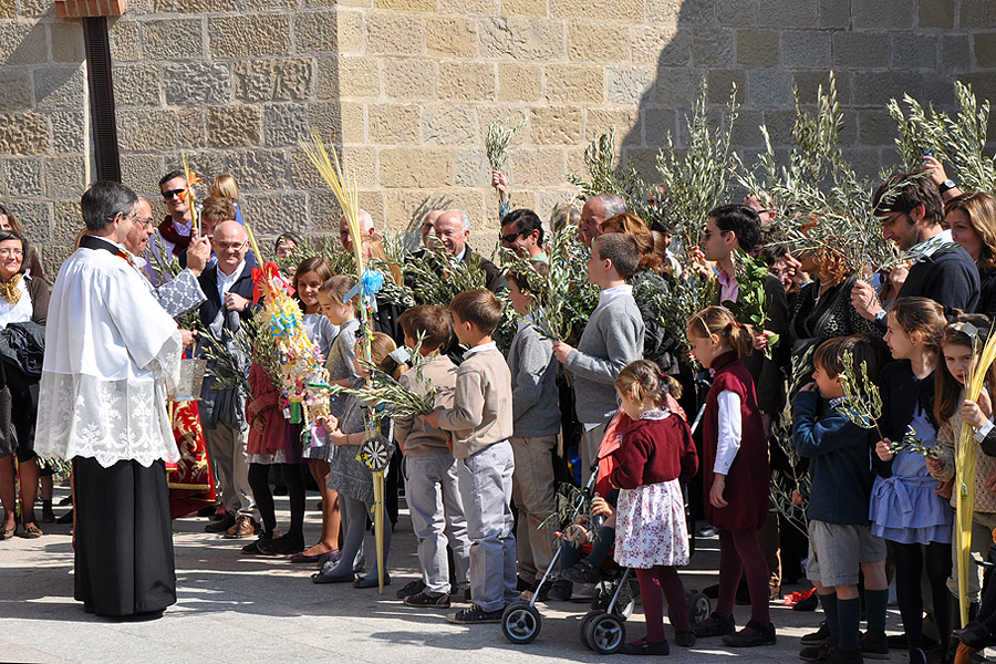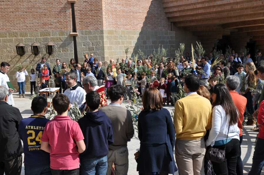 Jóvenes y familias han protagonizado la primera ceremonia de la Semana Santa en Torreciudad, la Bendición de los Ramos antes del comienzo de la misa