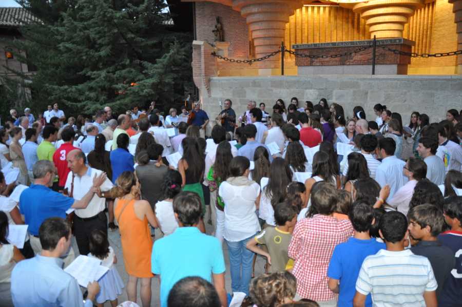 Por la noche, como cada 14 de agosto, muchos veraneantes y vecinos de la comarca han subido al santuario para cantar canciones a la Virgen,