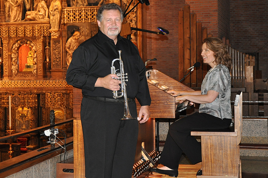 El trompetista californiano Gary Dilworth y la organista titular del santuario, Maite Aranzabal, inauguraron el Ciclo Internacional de Órgano de Torreciudad.