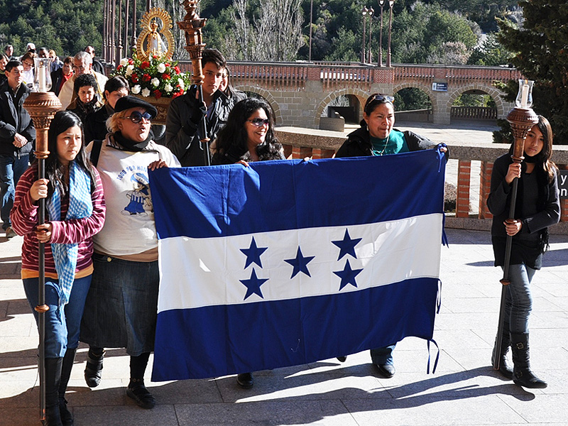 Familias hondureñas residentes en Cataluña, Aragón y País Vasco han peregrinado hoy a Torreciudad para honrar a su patrona. La Patrona del país centroamericano recibió
