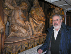 El equipo de mantenimiento de Torreciudad ha procedido durante unos días a realizar una limpieza restauradora del retablo que preside el santuario. Esta es la