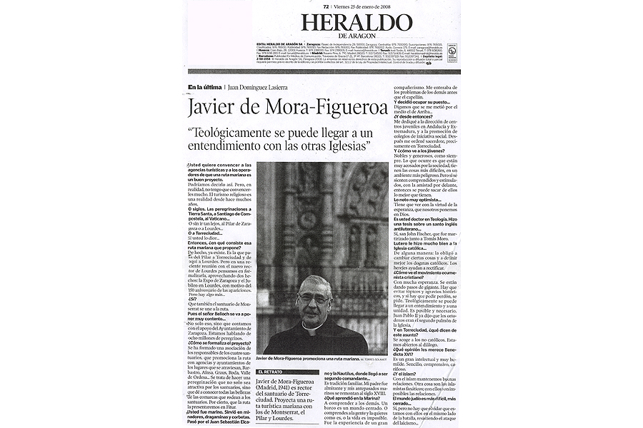 Entrevista a Javier de Mora-Figueroa, rector del santuario de Torreciudad, realizada por el periodista Juan Domínguez Lasierra del diario “Heraldo de Aragón”. Usted quiere convencer