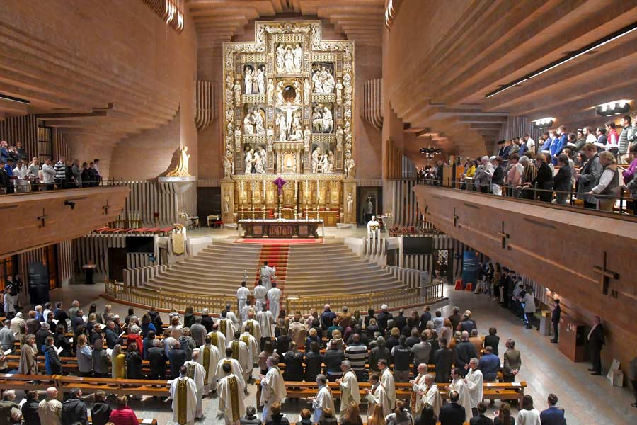 La celebración del Triduo Pascual ha comenzado hoy en Torreciudad con los oficios de Jueves Santo y la procesión con el Santísimo Sacramento hasta el