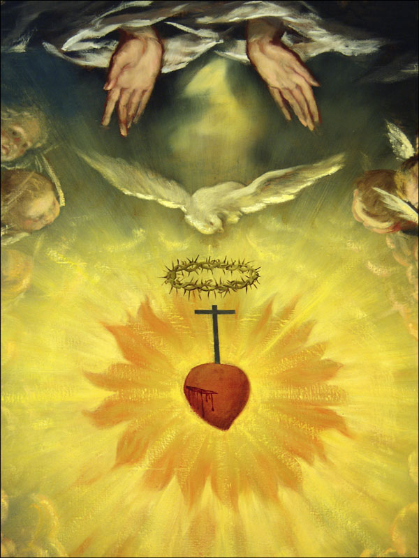 Una pintura del Sagrado Corazón de Jesús, obra de Federico Laorga, preside como retablo la capilla dedicada al Sagrado Corazón del Señor, situada junto al medallón de la Virgen de Torreciudad. El cuadro es una alegoría que tiene en el centro un Corazón de Jesús herido por la lanzada y, sobre él, la Cruz y la corona de espinas. Alrededor del Corazón, una explosión de rayos luminosos y todo rodeado por cabezas de querubines. Sobre el Corazón, el Espíritu Santo, en forma de paloma, y en lo alto, entre nubes, aparecen las manos del Padre Eterno. Un coro de ángeles, con instrumentos musicales, alaban y glorifican a la Trinidad Beatísima y a la Humanidad Santísima del Señor. Una cinta escrita expresa sus voces con la frase de Jesús Igne veni mittere in terram («Fuego he venido a traer a la tierra», Evangelio de san Lucas 12, 49).