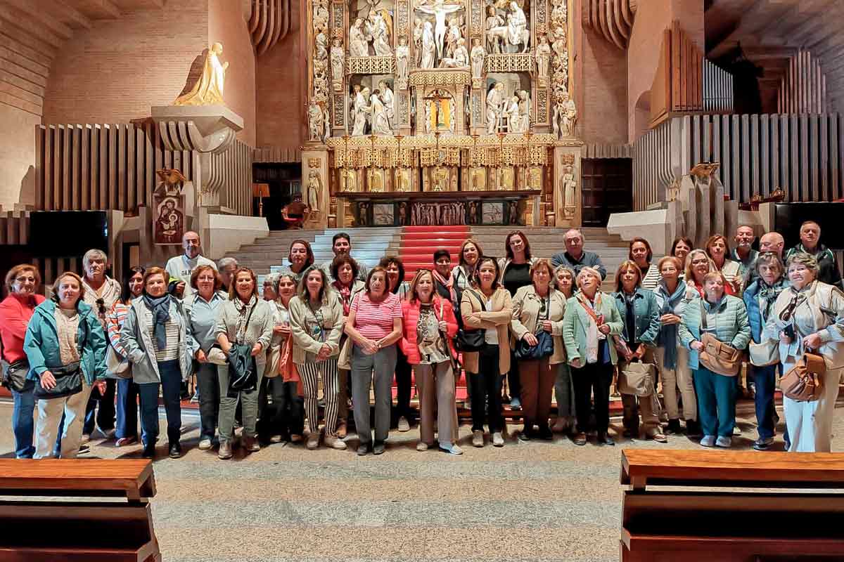 En un recorrido organizado por la agencia aragonesa «Huella Pirenaica», este grupo de viajeros de Badajoz está visitando diversos lugares del Alto Aragón. El programa incluye hoy Torreciudad, y tras la bienvenida ofrecida en la Oficina de Turismo, los participantes han asistido a la proyección del vídeo-mapping «El retablo te cuenta» y han realizado una visita guiada.