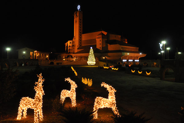 El árbol es una estructura metálica de 12 metros de altura, elaborada con ramas de poda de pino que adoptan la forma de un gran abeto. La iluminación navideña del santuario se completa con seis ángeles músicos suspendidos en altura que tocan sus trompetas anunciando el Nacimiento de Jesús y populares símbolos navideños que acompañan al visitante desde su entrada al santuario.