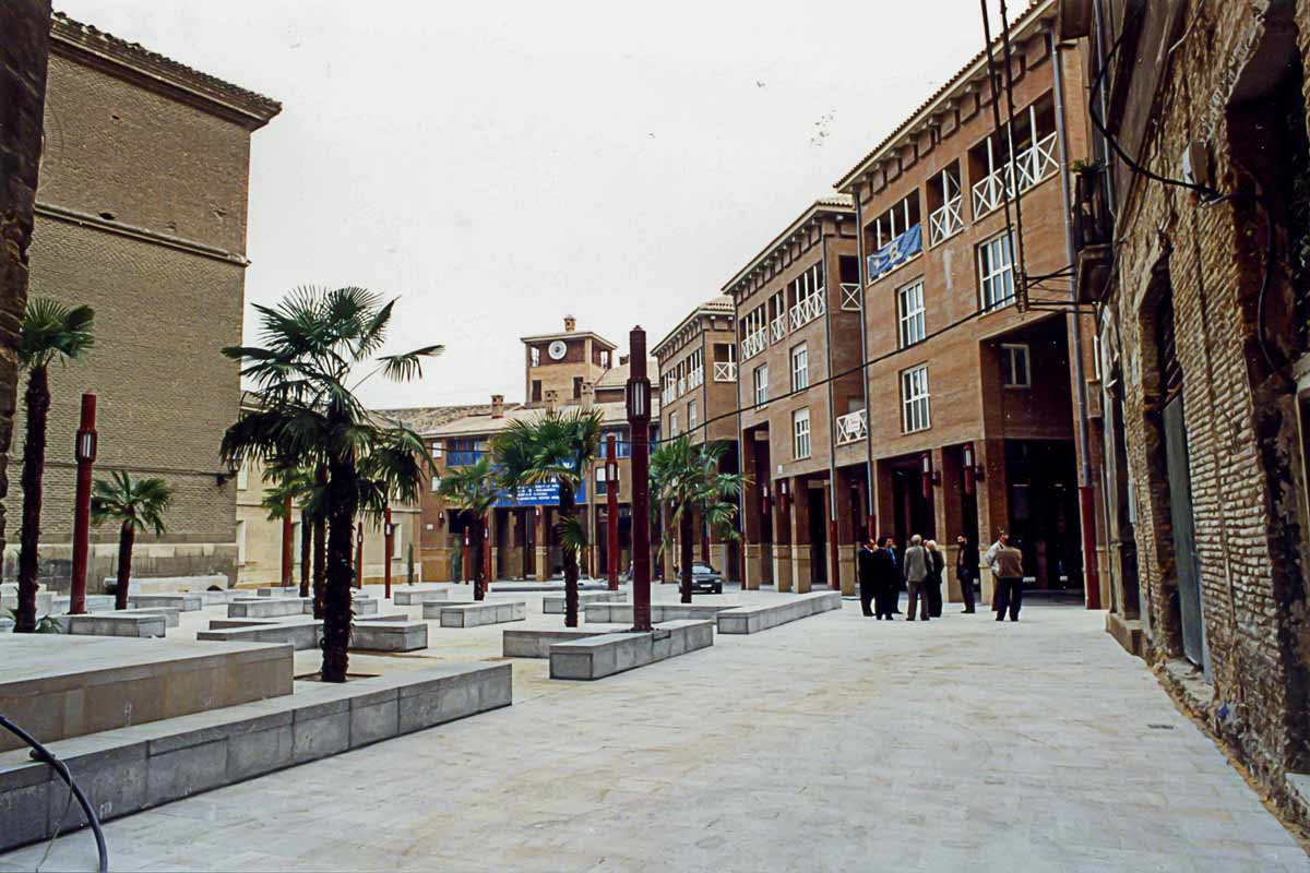 Y también de esa forma salió la plaza, como gozne o charnela entre un barrio de viviendas del casco antiguo y la plaza principal de Zaragoza, con monumentos de gran valor histórico artístico, para dignificar ese retal sobrante de la parte posterior de esas dos zonas de la antigua ciudad de Zaragoza que se iba configurando a través de los siglos.
