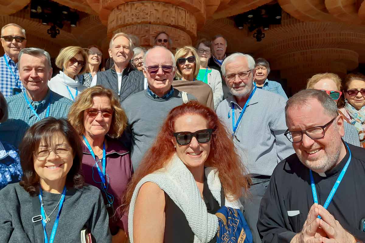 En su recorrido por la Ruta Mariana, este grupo de peregrinos norteamericanos denominado «Explore Your Faith», originarios de Dallas, ha recalado hoy en Torreciudad. Al llegar han visto el vídeo de presentación del santuario en inglés, han asistido a la misa celebrada por su sacerdote en la capilla de la Sagrada Familia y a la proyección en inglés del vídeo-mapping «El retablo te cuenta», y han realizado una visita guiada antes de continuar su peregrinación.