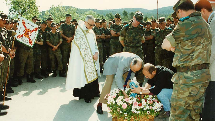 Trasladada a pie desde Barbastro, en esta veterana mochila montañera, por mandos y tropa del Regimiento de Cazadores de Alta Montaña “Valladolid” nº 65, y presentada por las Damas de la Inmaculada. La peregrinación tuvo lugar el 5 de mayo de 1994.