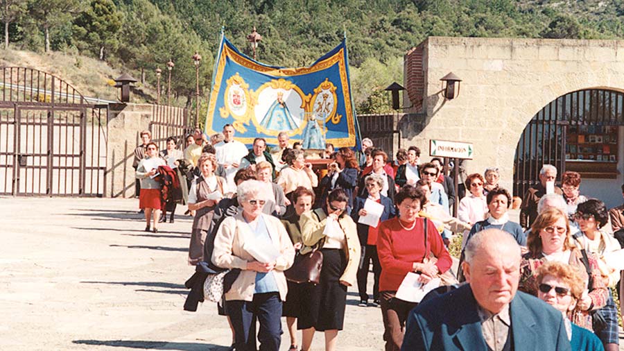 Presididos por su párroco, un buen número de devotos de la Virgen peregrinó desde Maillane para depositar esta imagen en Torreciudad el día 21 de abril de 1998.