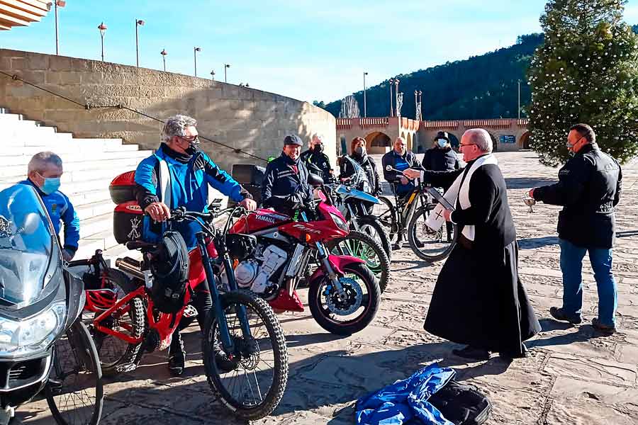 Como ya es tradicional cada 1 de enero, recibimos la visita de moteros y ciclistas, vecinos de las localidades oscenses de Osso de Cinca, Belver de Cinca y Zaidín. En esta ocasión, han compuesto la cifra del año sobre manzanas recogidas en su comarca, y han formado un árbol de Navidad en la escalinata del santuario después de recibir la bendición sobre sus vehículos, dada por el rector de Torreciudad, Ángel Lasheras.