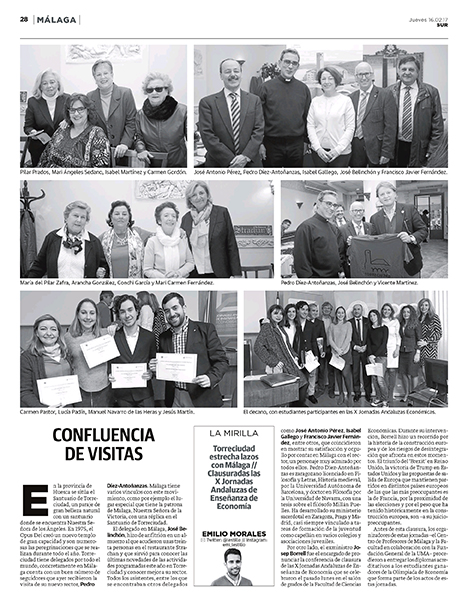El rector del santuario, Pedro Díez-Antoñanzas, acompañado del responsable de los Delegados del Patronato, José Antonio Pérez, ha visitado estos días la ciudad de Málaga. En diversas reuniones han estrechado los lazos que nos unen a esta tierra andaluza, habida cuenta de los numerosos peregrinos malagueños que hemos acogido a lo largo de los años. El Diario SUR se ha hecho eco de la visita.