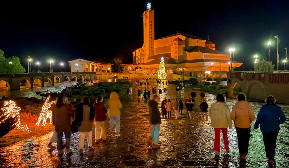 Durante el tiempo de Navidad preside la explanada del santuario un gran árbol de Navidad, culminado por una brillante estrella e iluminado de noche con elegantes ondas de luz.