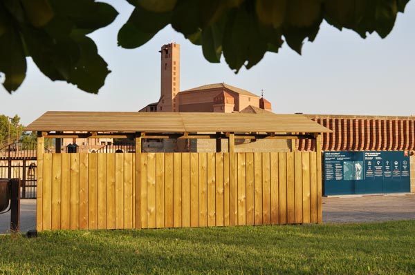 En el marco del respeto y cuidado del entorno medioambiental de Torreciudad, se han instalado unos cubrecontenedores con el objetivo de reducir el impacto visual de los receptores de residuos ubicados a la entrada del santuario.